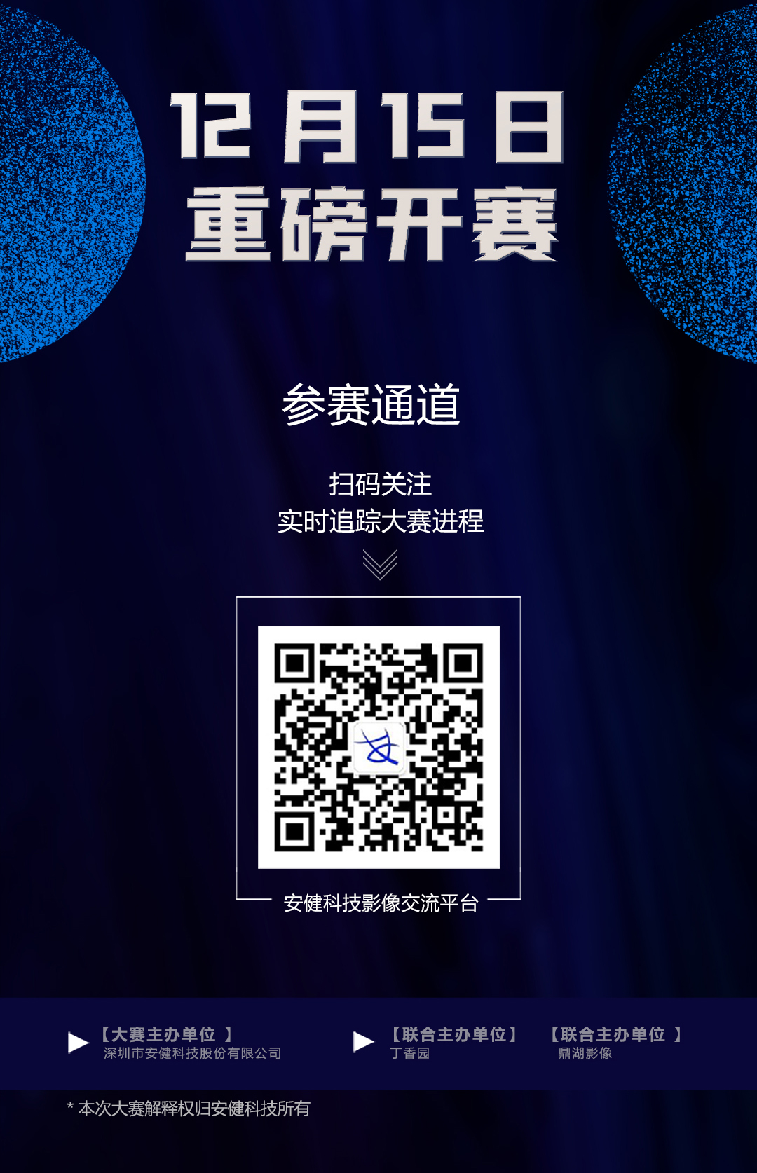 第二屆動(dòng)態(tài)DR影像診斷大賽,安健科技繼續(xù)聯(lián)合丁香園與鼎湖影像兩大醫(yī)學(xué)平臺(tái),聚集8大全國(guó)知名專(zhuān)家組成大賽專(zhuān)家委員會(huì),旨在呈現(xiàn)一場(chǎng)高層次、高水平的專(zhuān)業(yè)對(duì)話(huà)。大賽將于12月15日重磅開(kāi)賽,期待各路診斷高手過(guò)招。