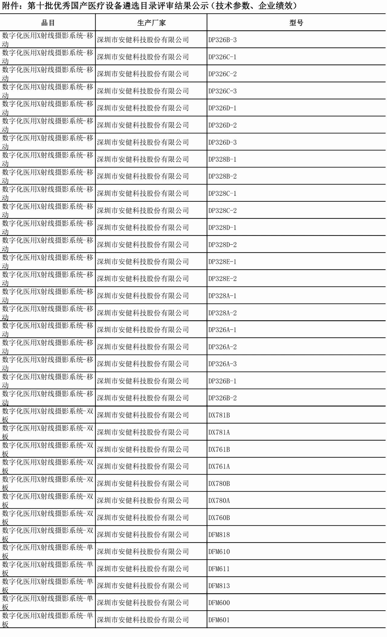 近日,中國醫學裝備協會公示了第十批《優秀國產醫療設備產品目錄》的遴選評審結果。安健科技憑借其卓越的產品能力和品質,懸吊DR系列、雙立柱DR系列以及移動DR系列產品,共計35款產品成功入選該批次的優秀國產醫療設備名單。