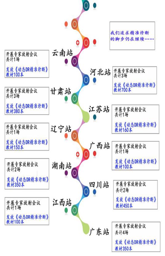 從華南到華北,從西南到東北,安健科技追求“精準診斷”的腳步一直在中國的版圖上延續。截至目前,“精準診斷之動態DR影像技術普及工程”已經在全國范圍內開展了放射培訓會議共計30多場,發放4500余本《動態DR精準診斷》培訓教材,累計為4000余名基層影像工作者進行了動態DR精準影像技術培訓,受到了千余名專家和學者的高度認同。