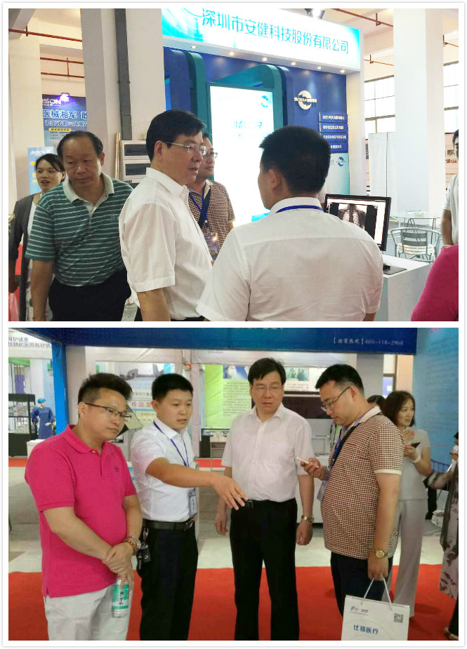會中,湖南省衛生和計劃生育委員會主任張健親臨安健科技展臺參觀指導,對安健科技提出的“動態DR精準診斷項目”給予充分的肯定與支持。同時,也鼓舞了安健科技要讓普放領域的精準影像時代進一步在長沙這塊福地上生根發芽。